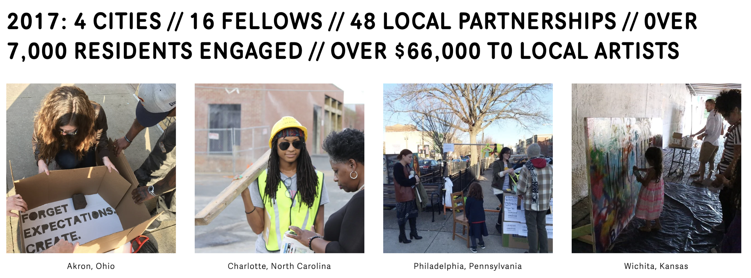 The League of Creative Interventionists was a non-profit I founded in 2016 and served as Executive Director until 2018 before transitioning to the Board of Directors. LOCI was then led by Jonell Logan up until Covid when we sunsetted as an organization. LOCI started as volunteer-led chapters in cities around the world, before becoming a funded non-profit and sponsoring a cohort of national fellows and projects that harnessed the creativity of local residents to create stronger, healthier, and more vibrant communities. We had 23 fellows over our existence, providing over $180k to community artists and engaging over 13,000 people. We also held an annual convening of our national fellows, bringing them together to connect with their peers, be inspired by keynote speakers, and explore a new city.